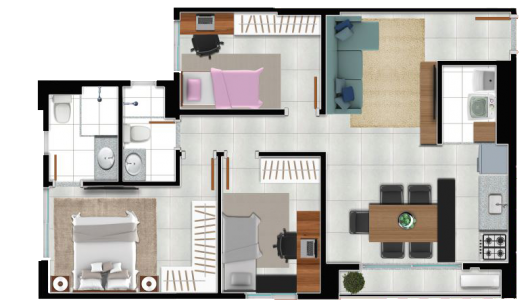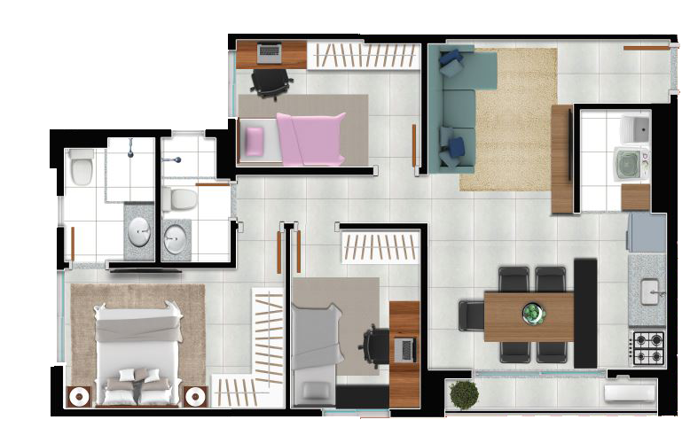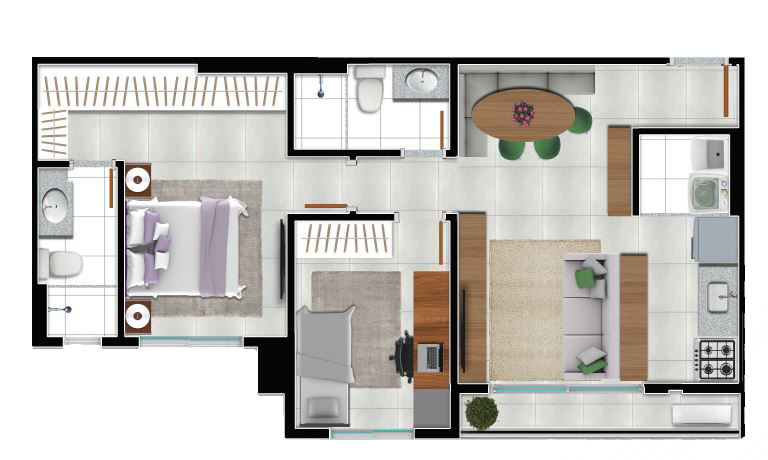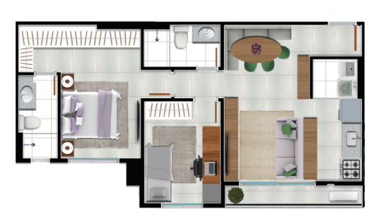 Área mobiliada e entregue segundo memorial descritivo. A CMO Construtora se reserva o direito de corrigir eventuais erros. Imagens e perspectivas meramente ilustrativas.
