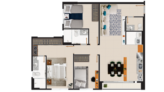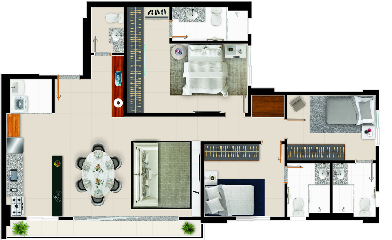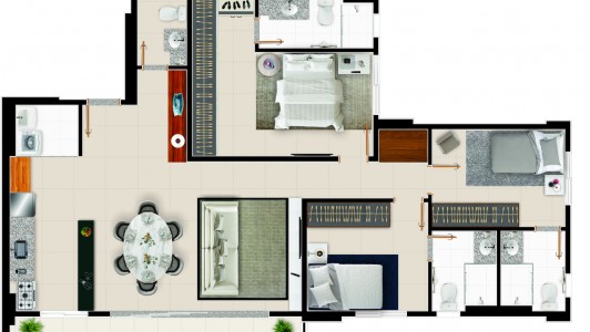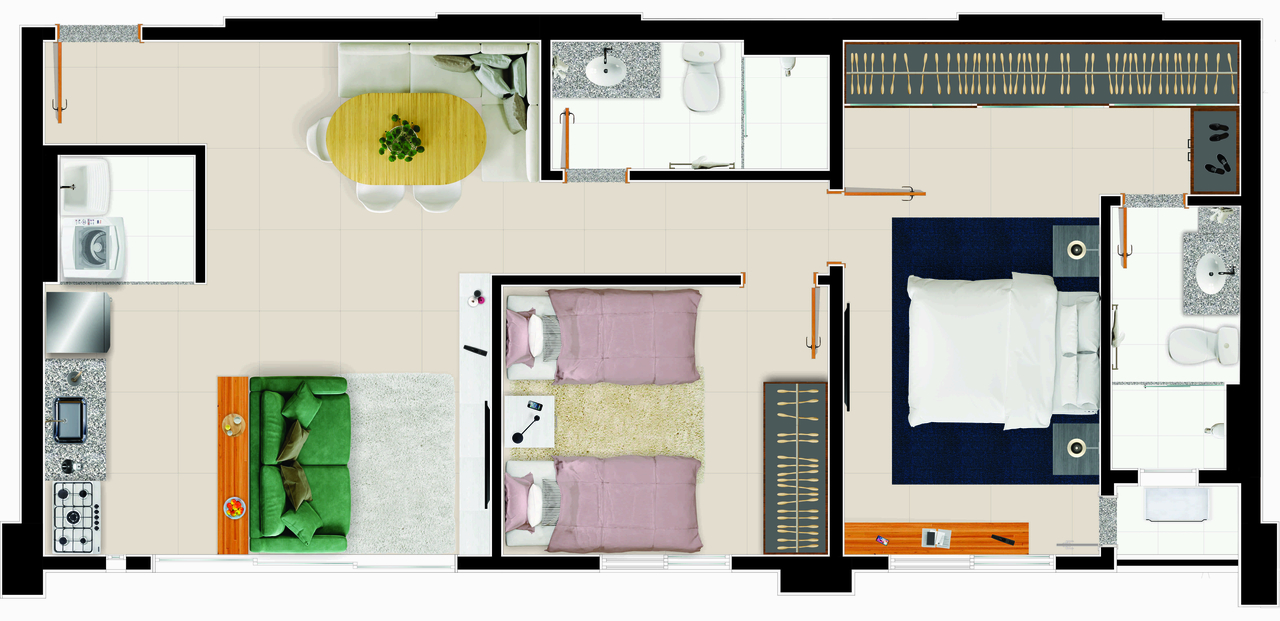 Área mobiliada e entregue segundo memorial descritivo. A CMO Construtora se reserva o direito de corrigir eventuais erros. Imagens e perspectivas meramente ilustrativas.