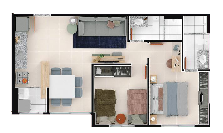 Área mobiliada e entregue segundo memorial descritivo. A CMO Construtora se reserva o direito de corrigir eventuais erros. Imagens e perspectivas meramente ilustrativas.