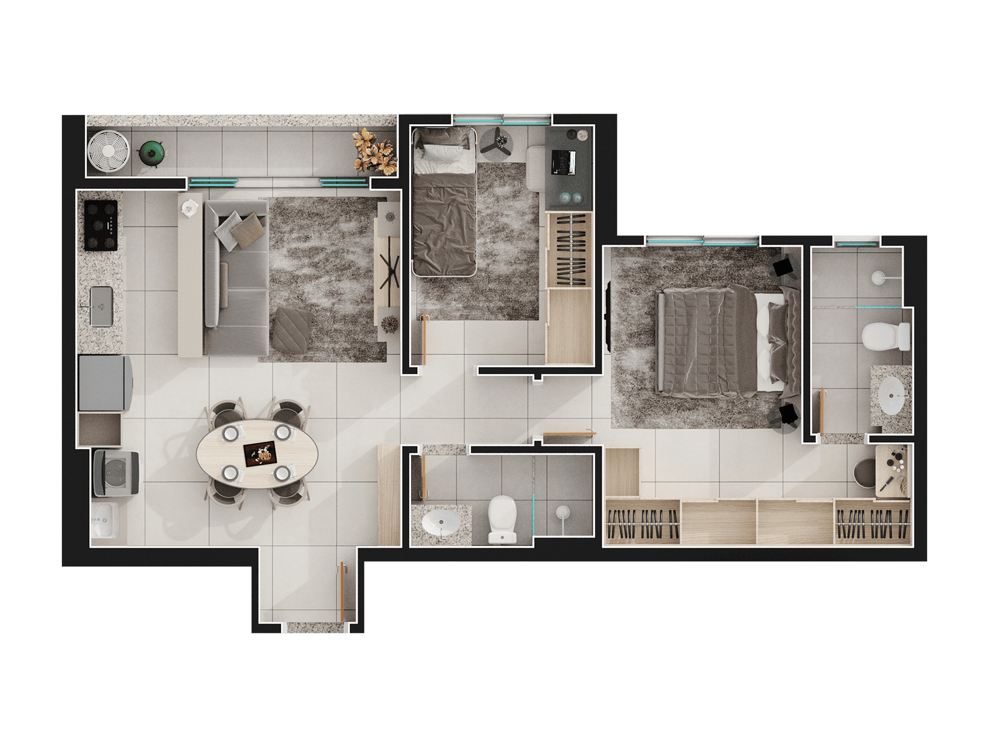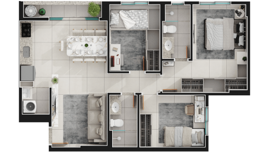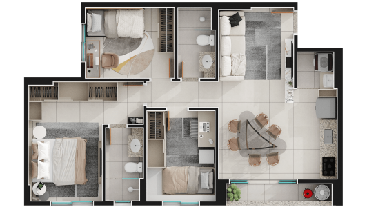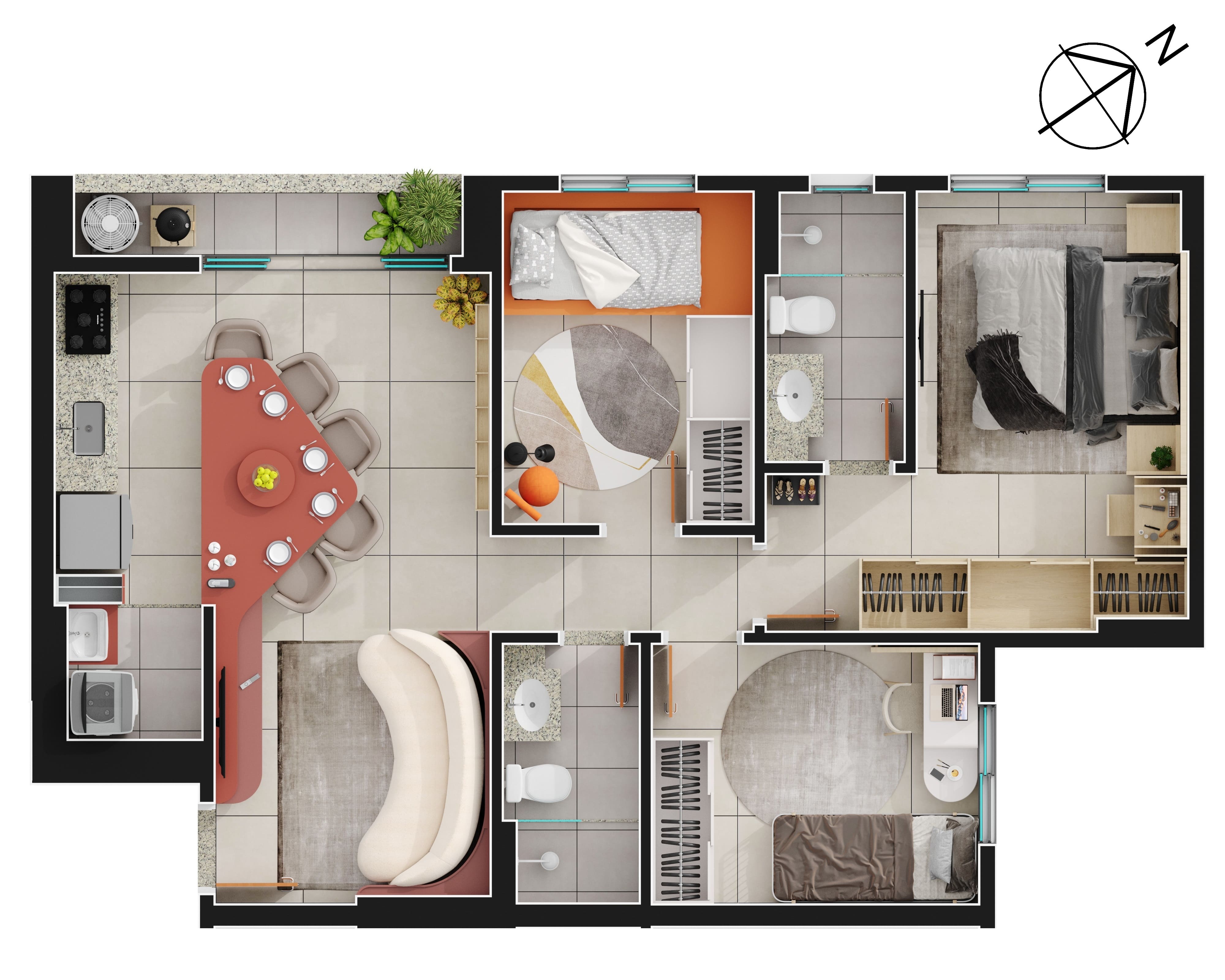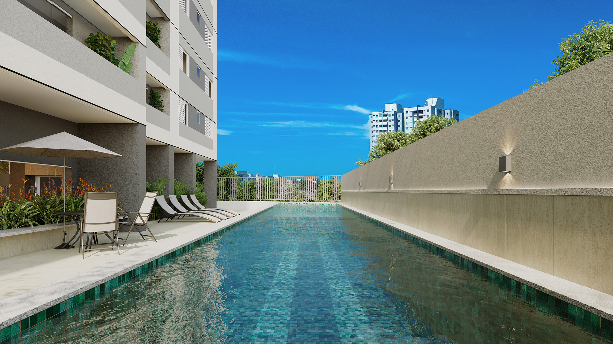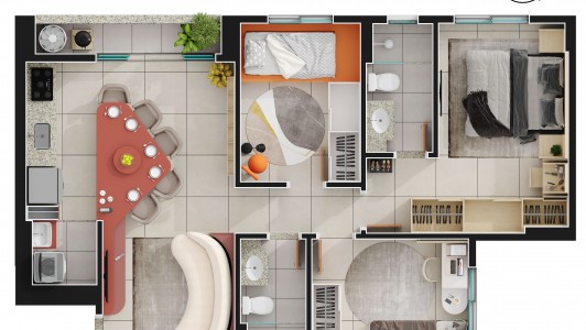 Área mobiliada e entregue segundo memorial descritivo. A CMO Construtora se reserva o direito de corrigir eventuais erros. Imagens e perspectivas meramente ilustrativas.