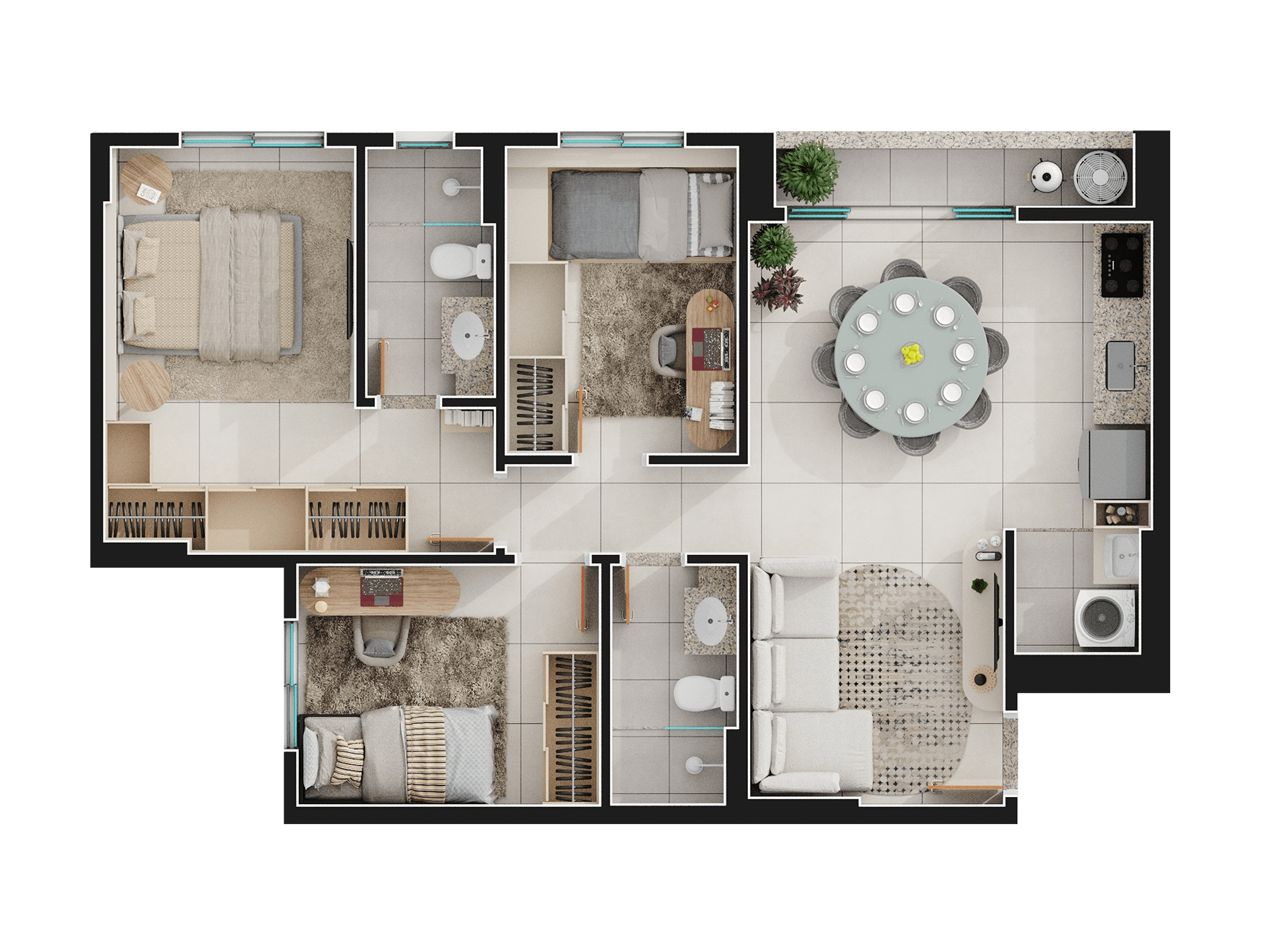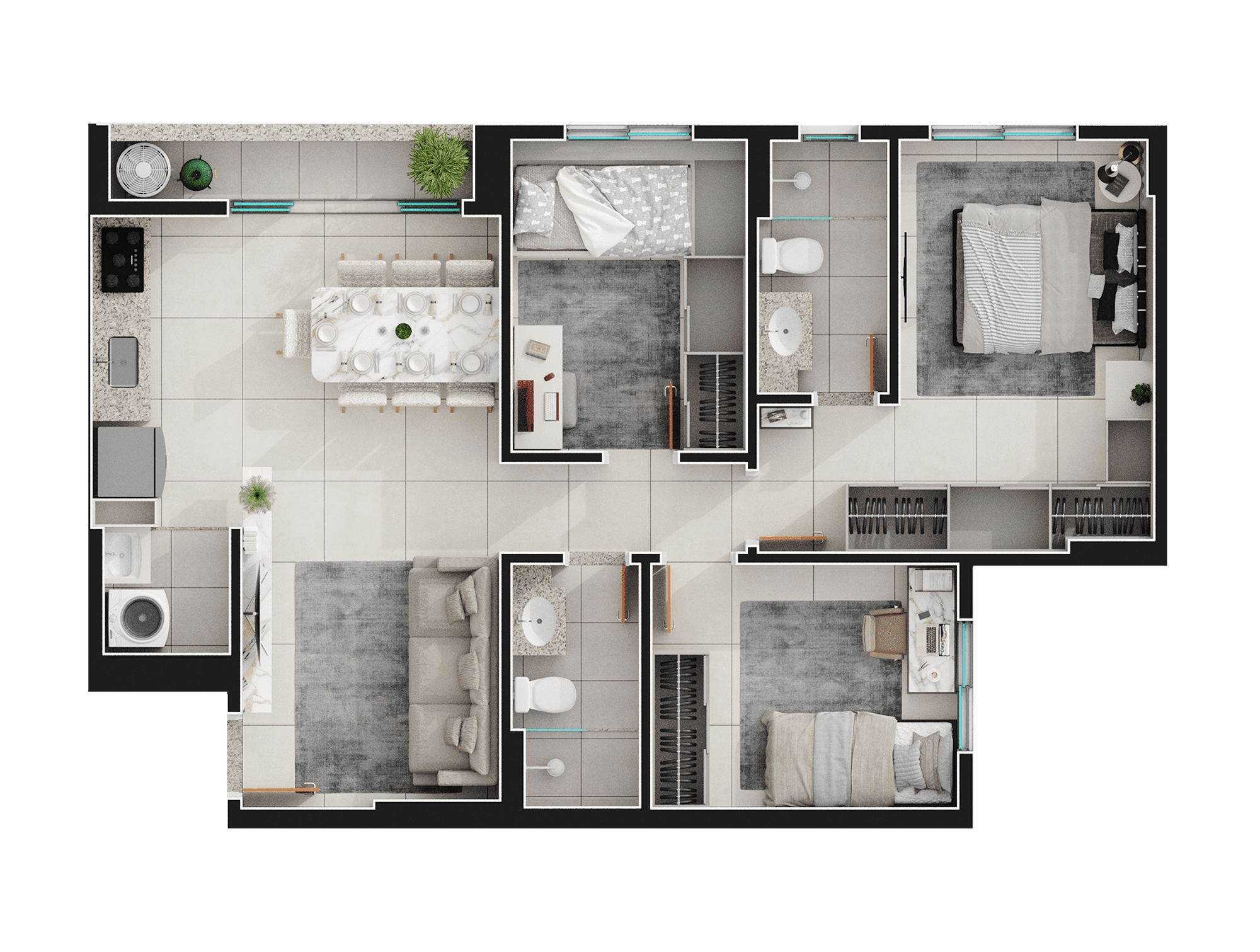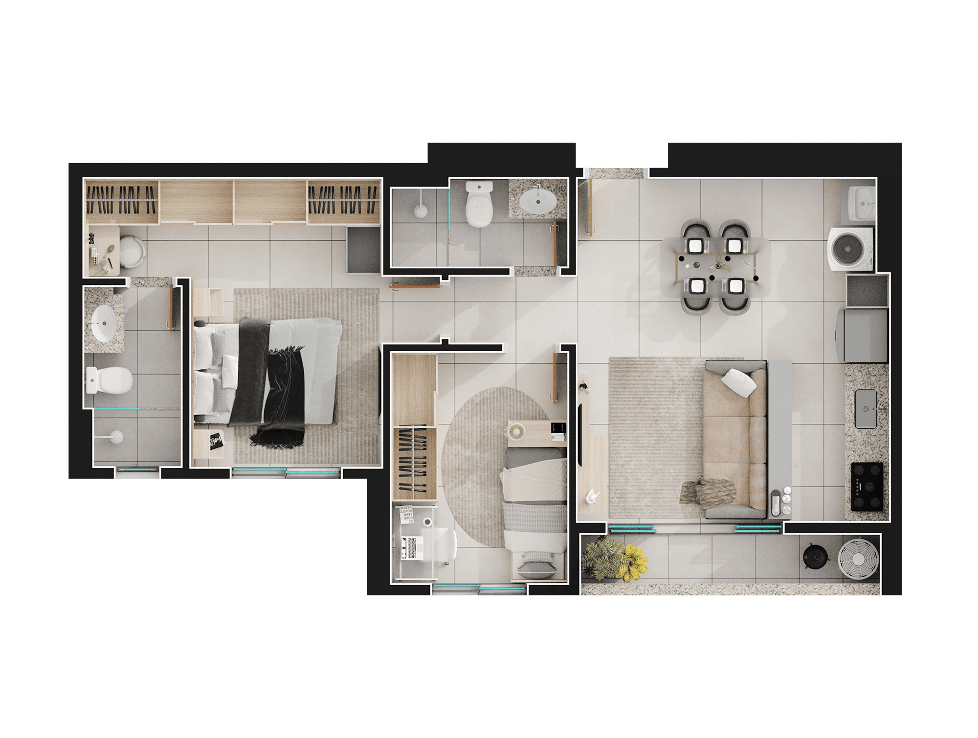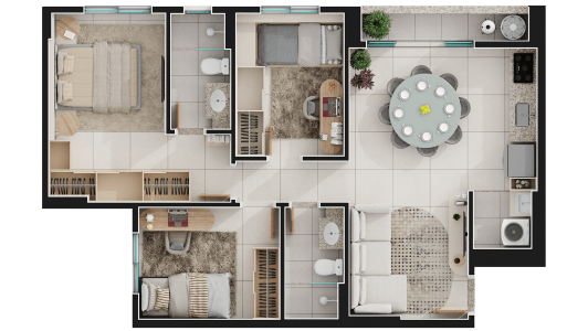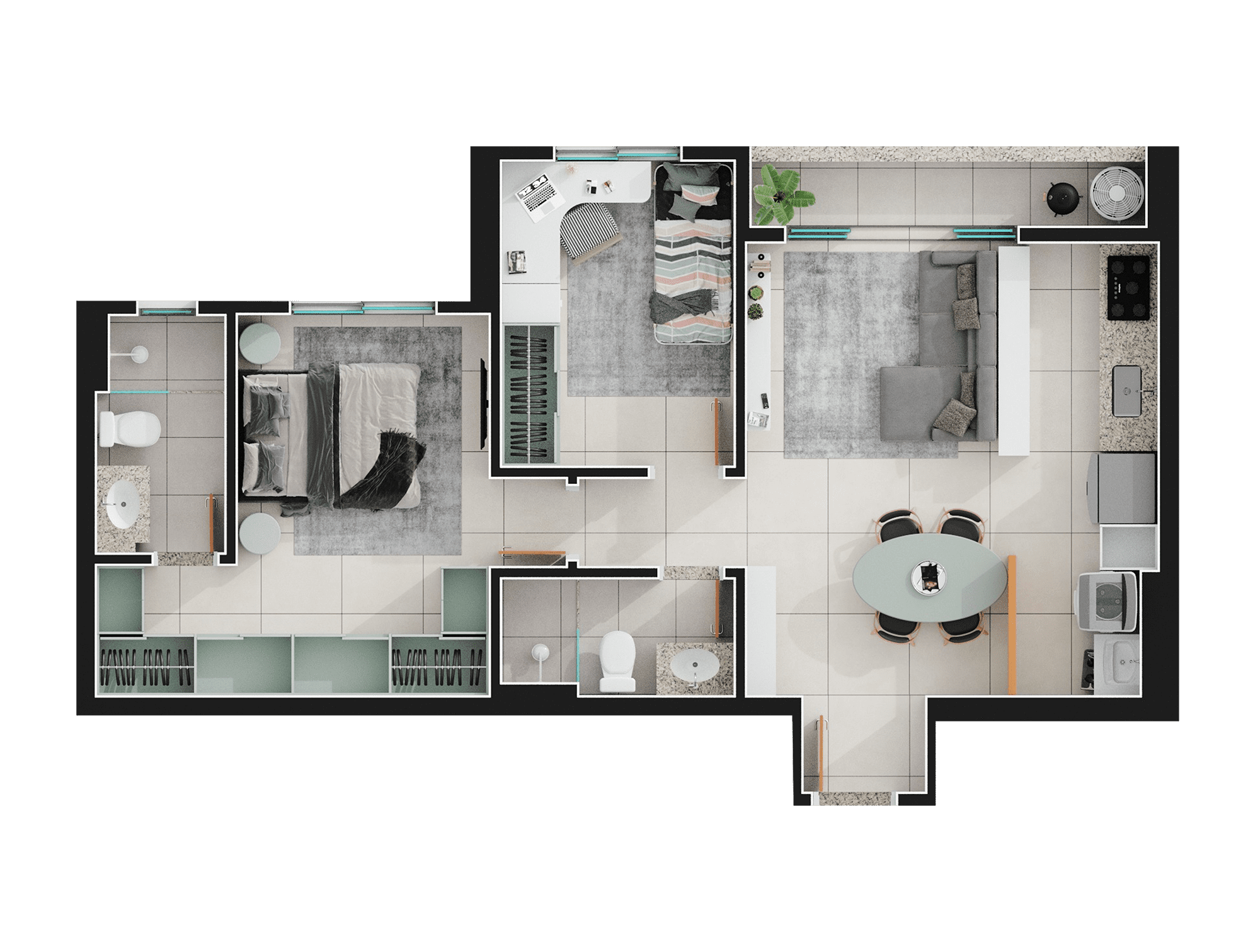 Área mobiliada e entregue segundo memorial descritivo. A CMO Construtora se reserva o direito de corrigir eventuais erros. Imagens e perspectivas meramente ilustrativas.