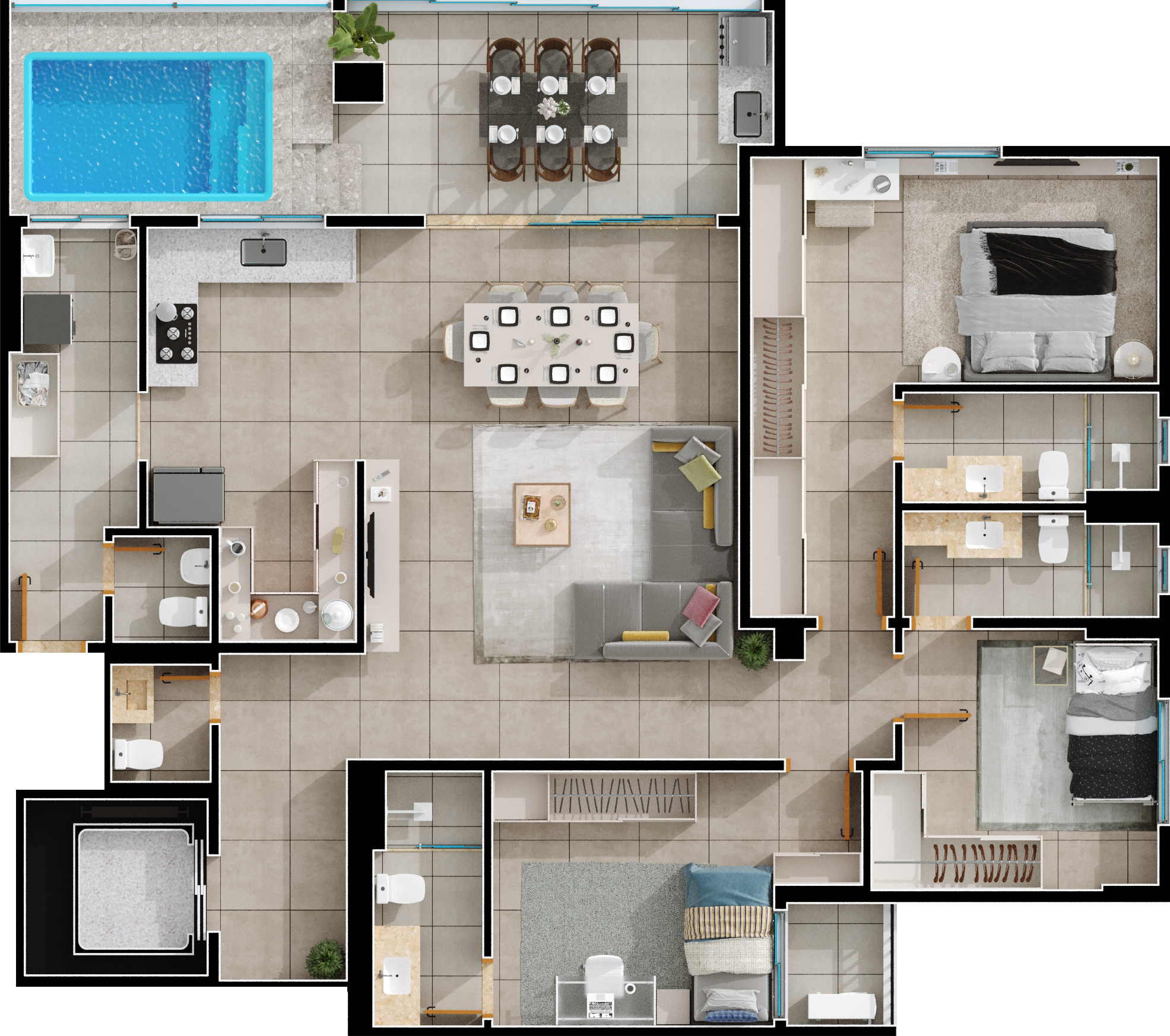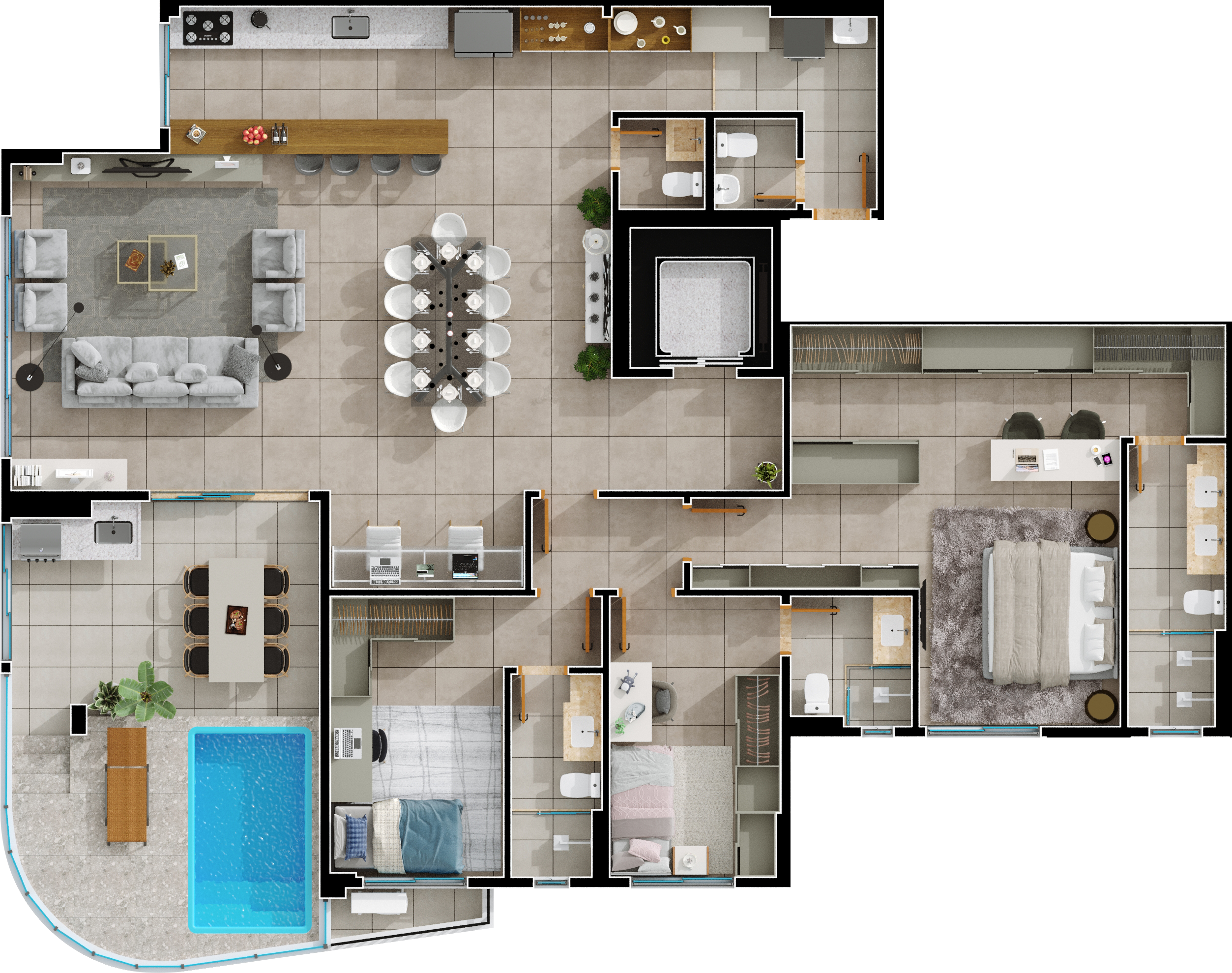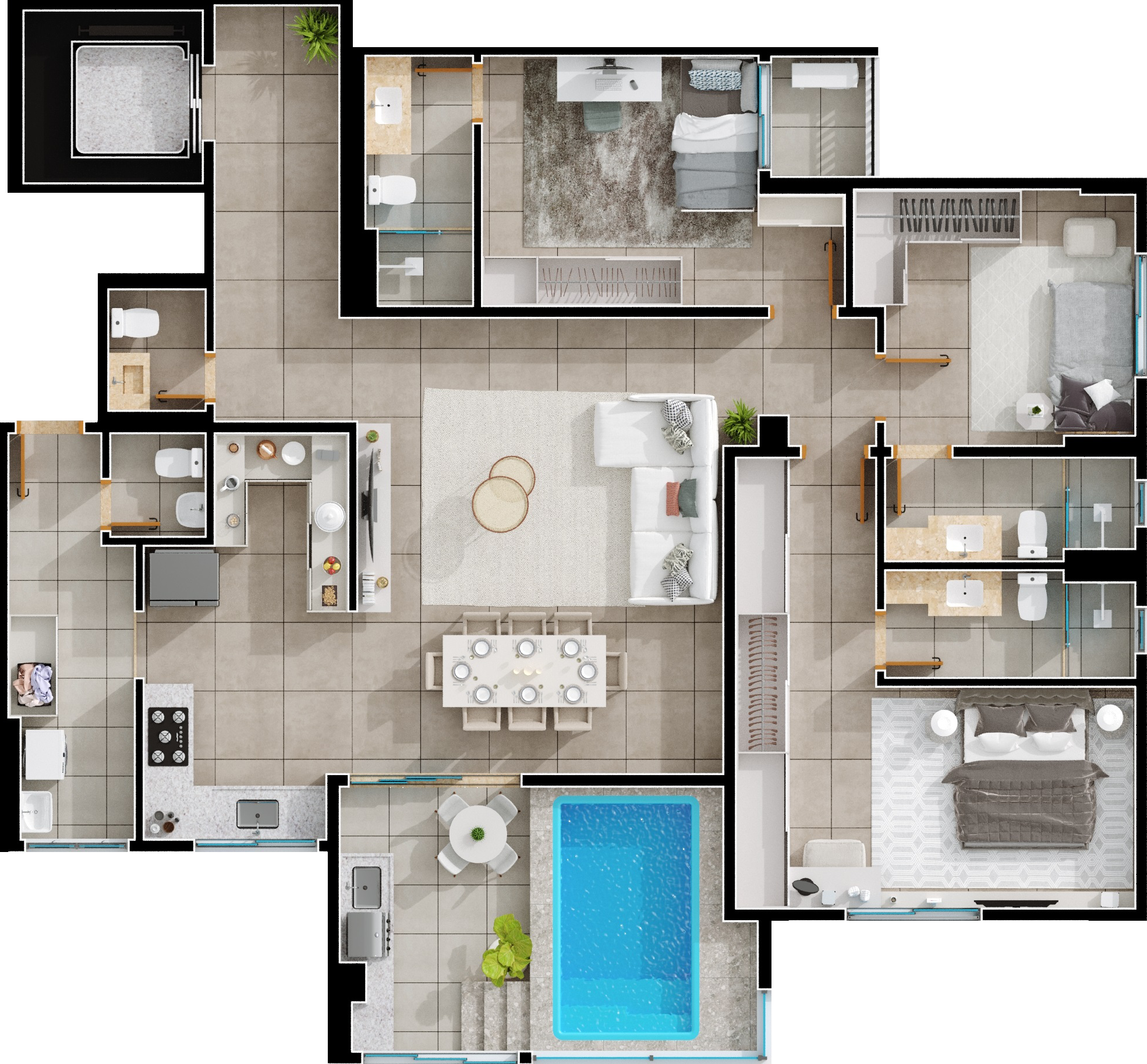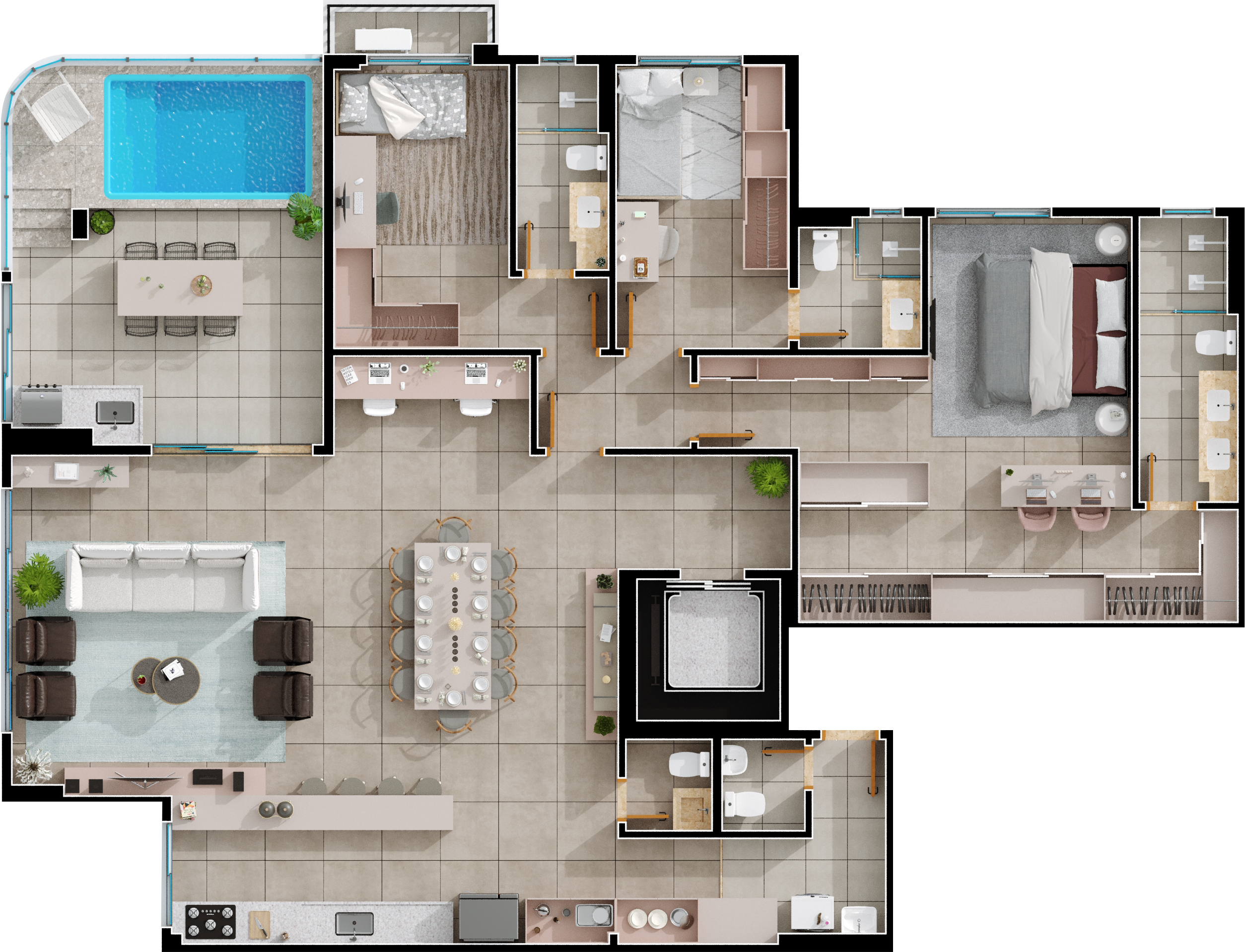 Área mobiliada e entregue segundo memorial descritivo. A CMO Construtora se reserva o direito de corrigir eventuais erros. Imagens e perspectivas meramente ilustrativas.