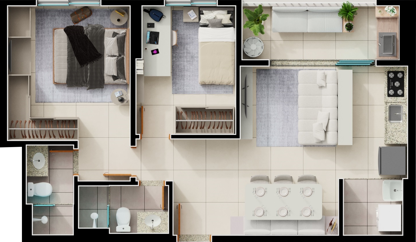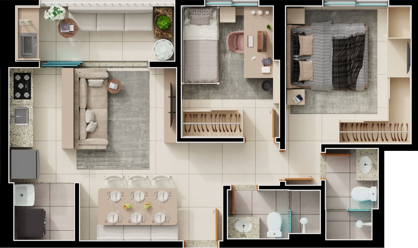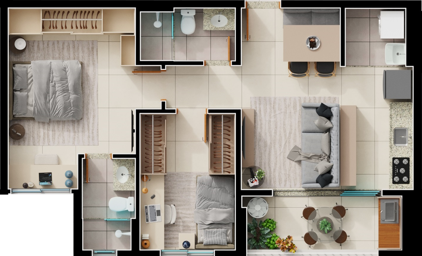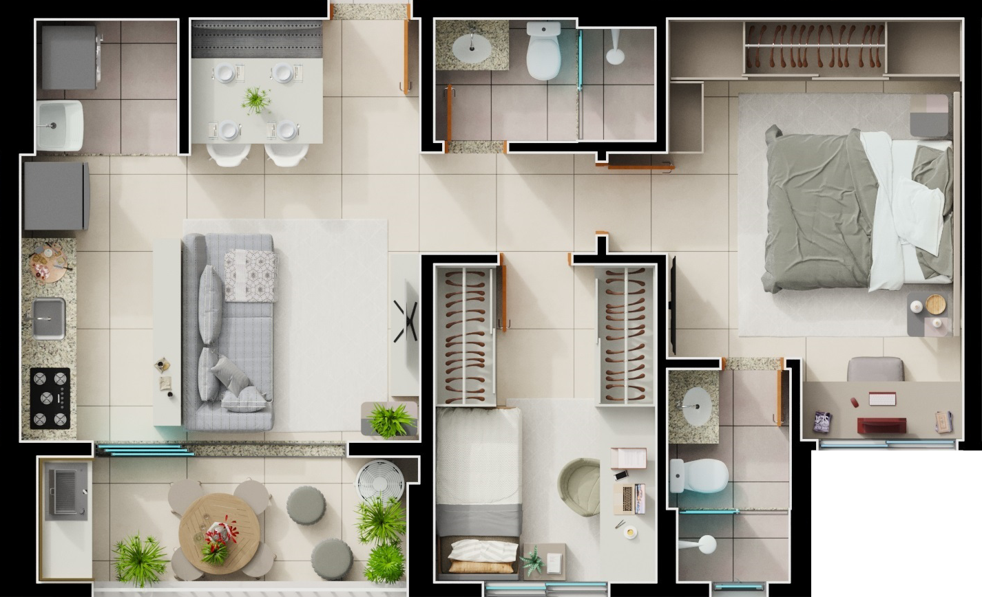 Área mobiliada e entregue segundo memorial descritivo. A CMO Construtora se reserva o direito de corrigir eventuais erros. Imagens e perspectivas meramente ilustrativas.