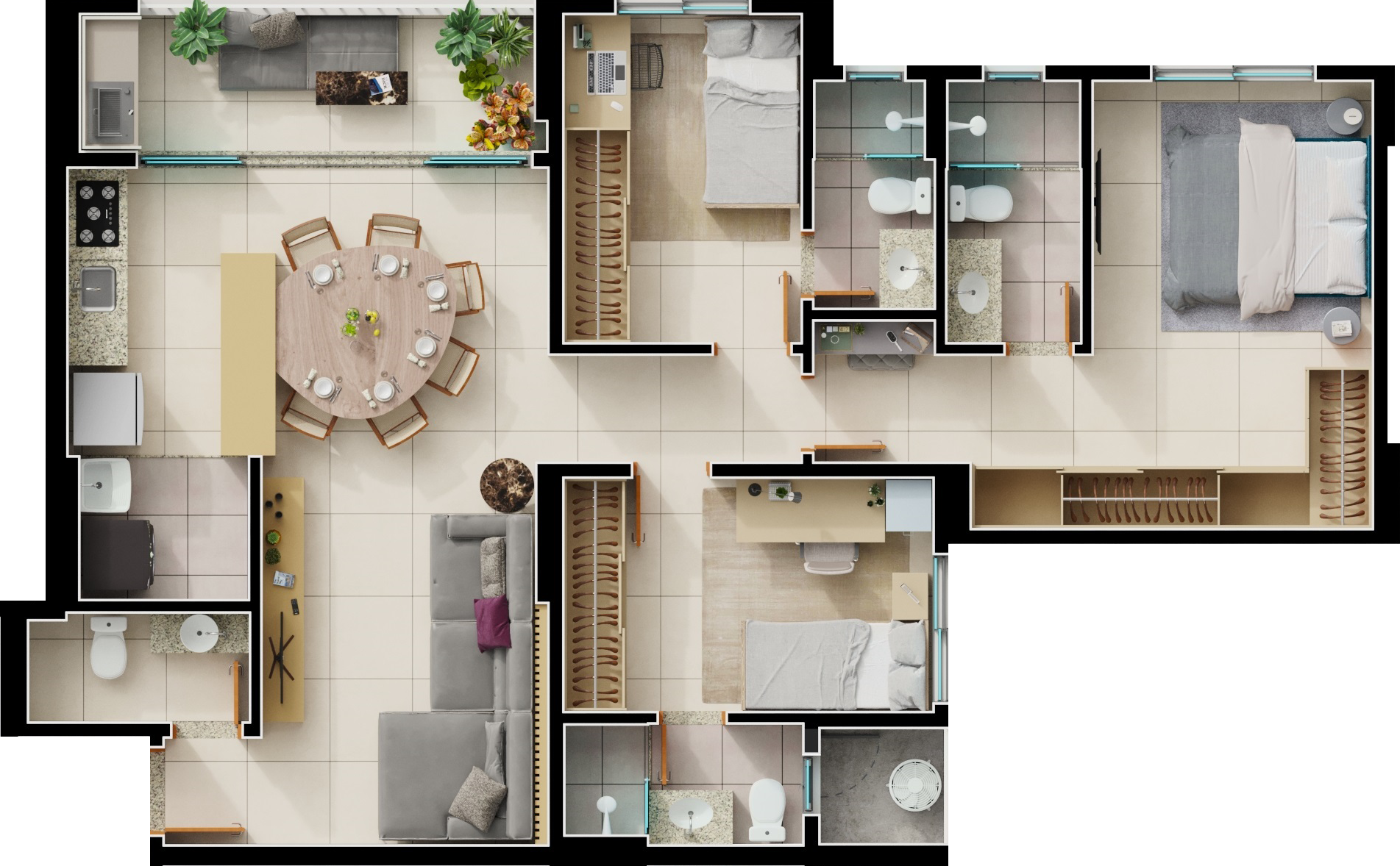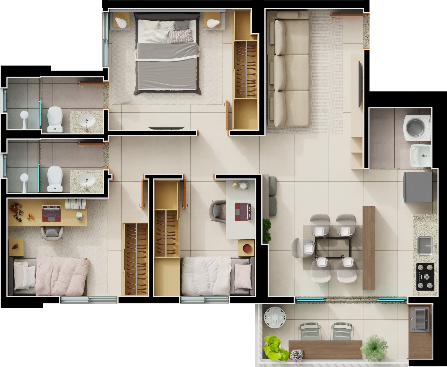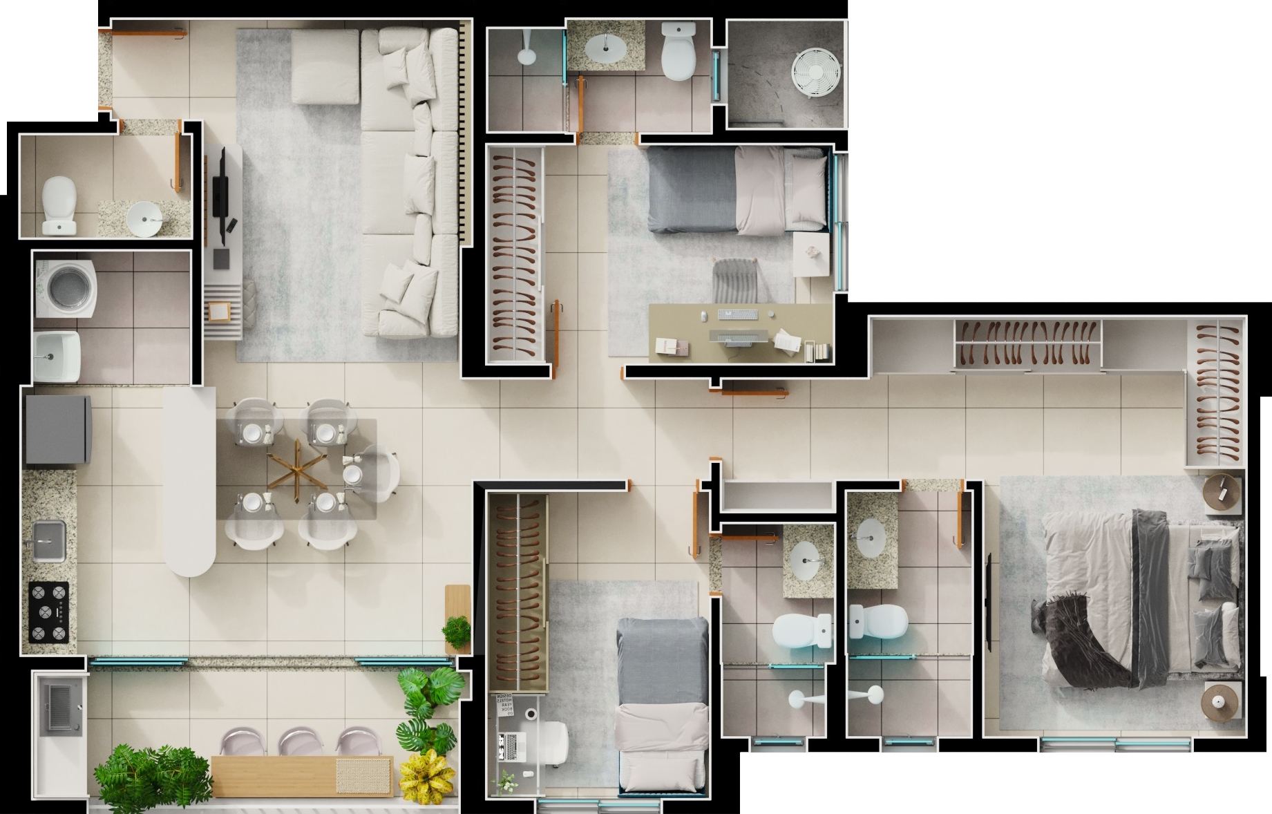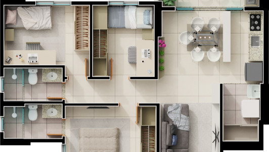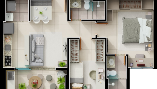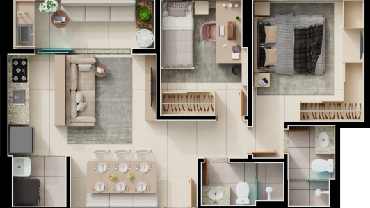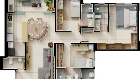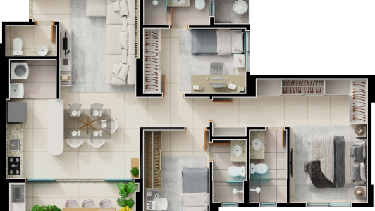 Área mobiliada e entregue segundo memorial descritivo. A CMO Construtora se reserva o direito de corrigir eventuais erros. Imagens e perspectivas meramente ilustrativas.
