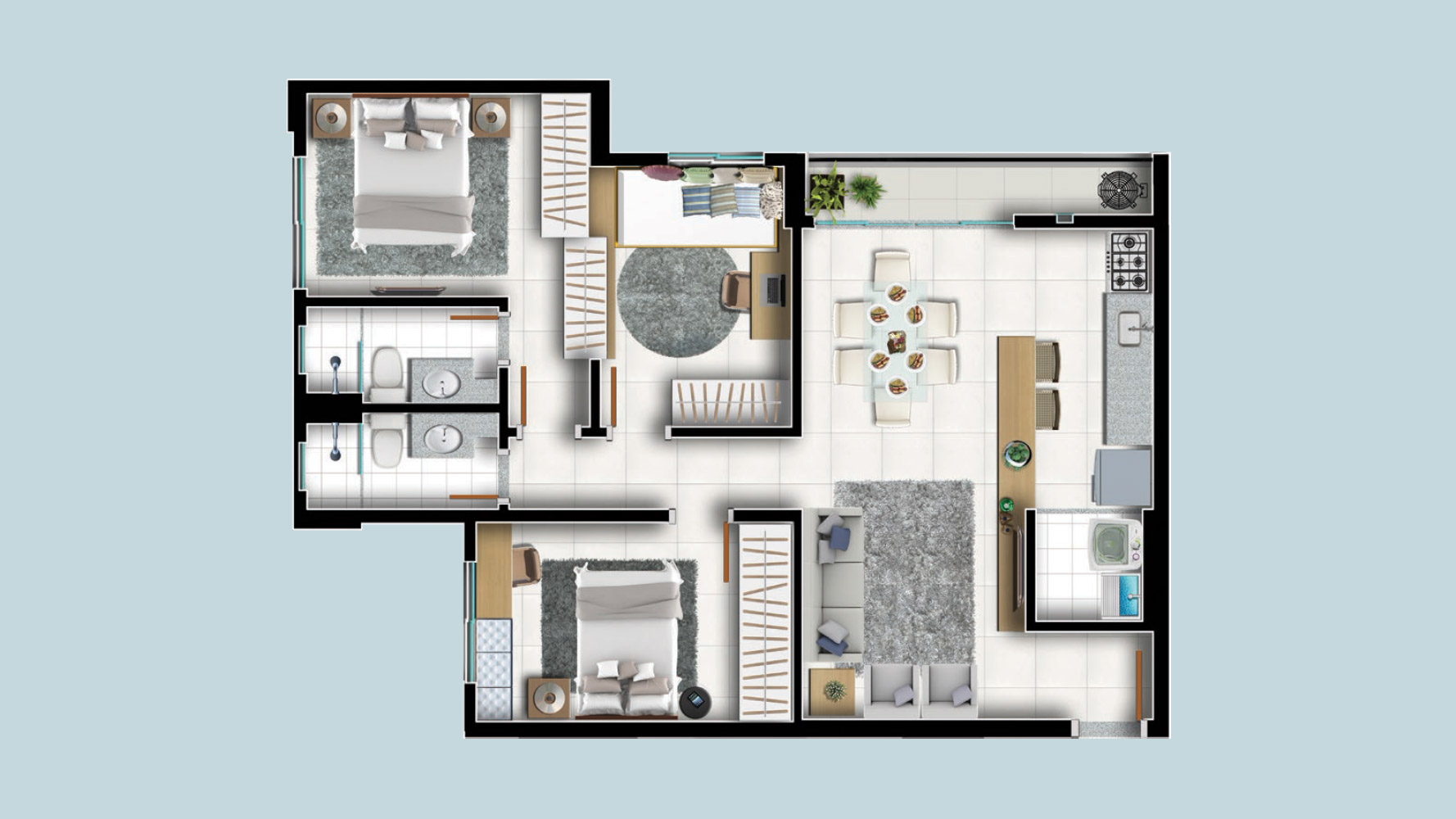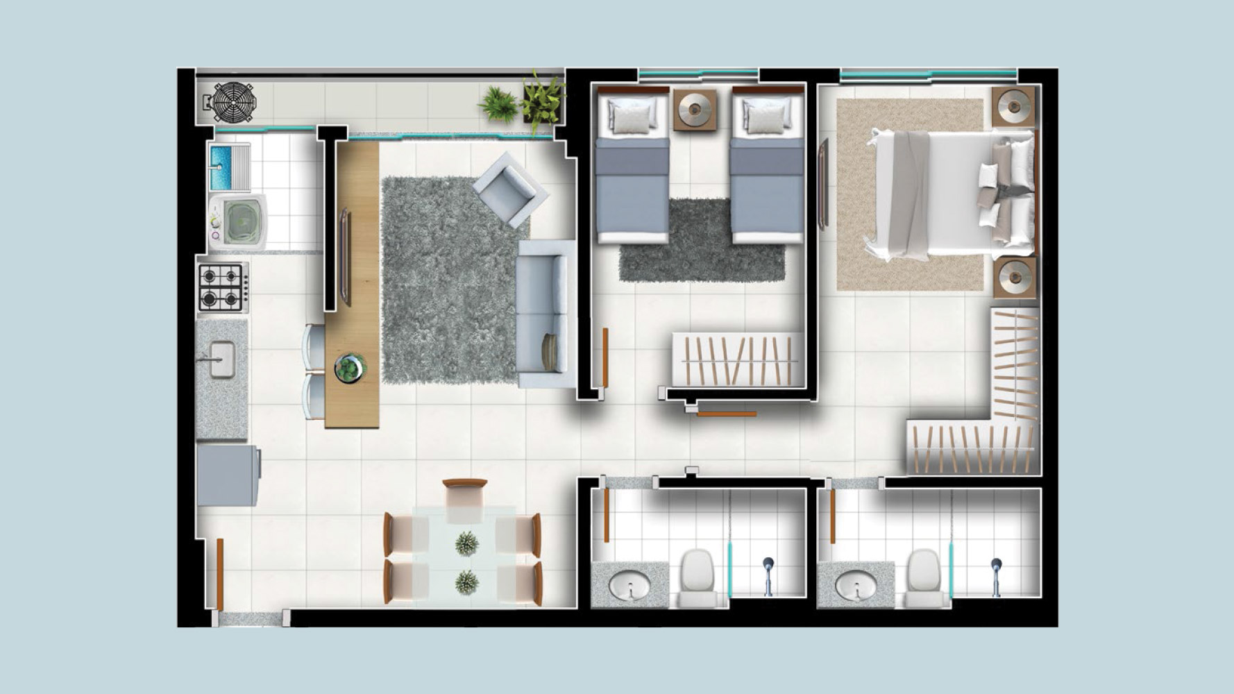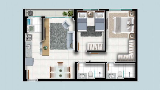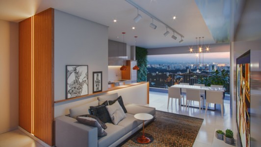 Área mobiliada e entregue segundo memorial descritivo. A CMO Construtora se reserva o direito de corrigir eventuais erros. Imagens e perspectivas meramente ilustrativas.